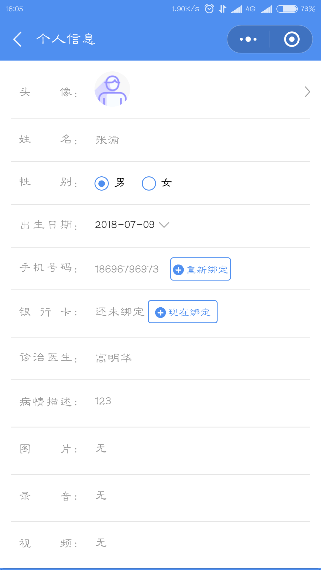 - 患者可以通過平臺(tái)繳費(fèi),查看自己的診治記錄及結(jié)果,對(duì)醫(yī)院及醫(yī)生進(jìn)行評(píng)價(jià)或投訴等。