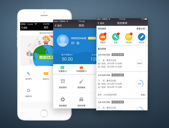 該微信端同時(shí)面向車主和維修廠:車主可通過(guò)微信端進(jìn)行預(yù)約、查詢維修進(jìn)度、查詢會(huì)員余額、接收保養(yǎng)提醒等;維修廠可以使用微信進(jìn)行活動(dòng)營(yíng)銷、客戶轉(zhuǎn)介紹,增加新用戶。微信端維修流程和用戶消費(fèi)實(shí)現(xiàn)了透明化的改進(jìn),同時(shí)微信自助服務(wù)的啟用,節(jié)省了客戶寶貴時(shí)間,同時(shí)也可幫助維修廠增強(qiáng)用戶粘性。